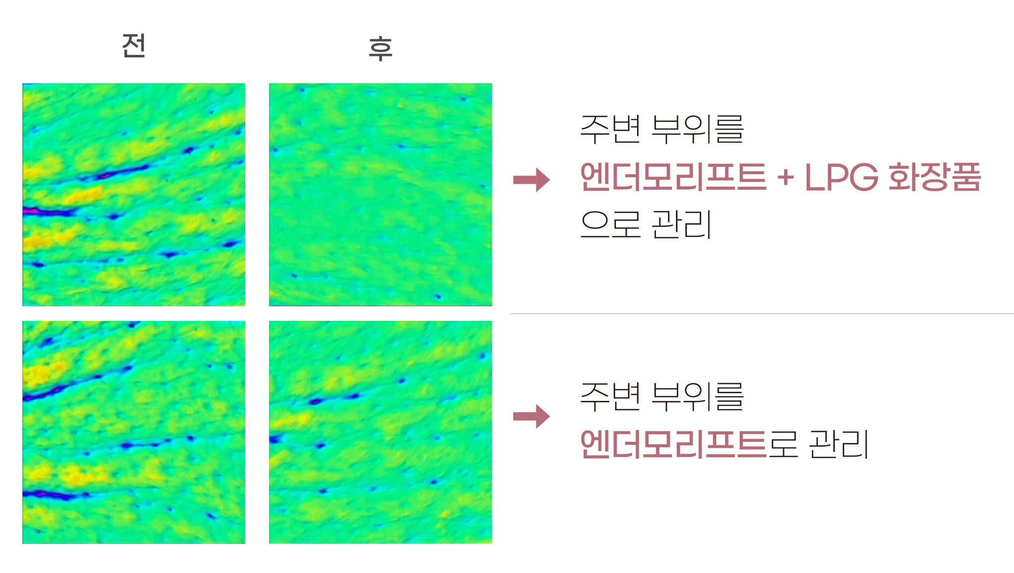 우리의 피부는 전체적인 하나의 에코 시스템으로, 이를 포괄적으로 관리하는 것이 중요합니다. LPG 화장품이 피부에 흡수됨과 동시에, LPG 엔더몰로지는 인체 내 세포 자극을 활성화시키며 시너지 효과를 냅니다.